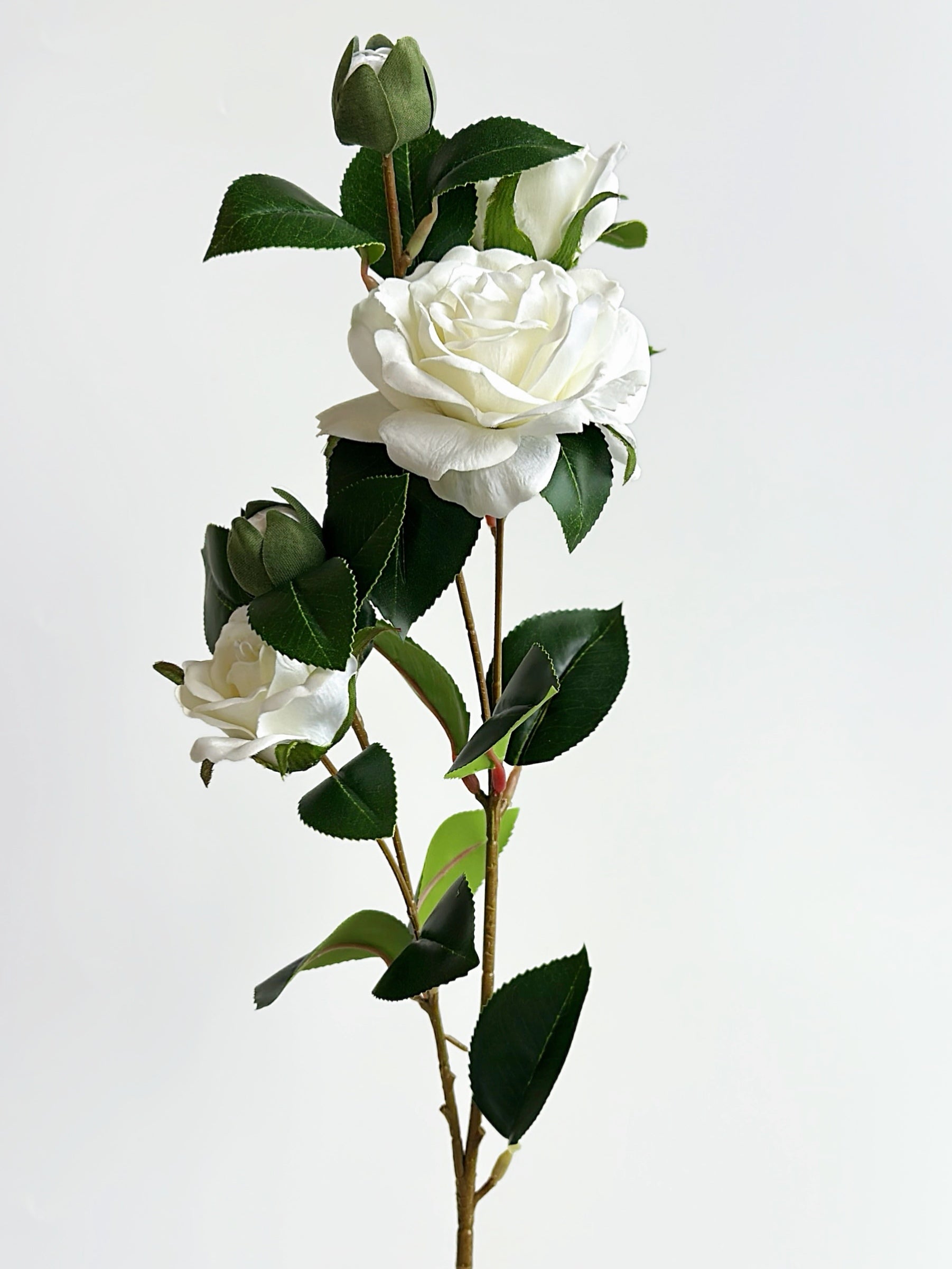 Discover the natural elegance of this 4-Head Real Touch White Spray Rose, featuring a harmonious mix of fully opened blooms and delicate buds on multiple branches. Its versatile design makes it a perfect addition for enhancing any decorative style, from modern minimalist to classic opulent.