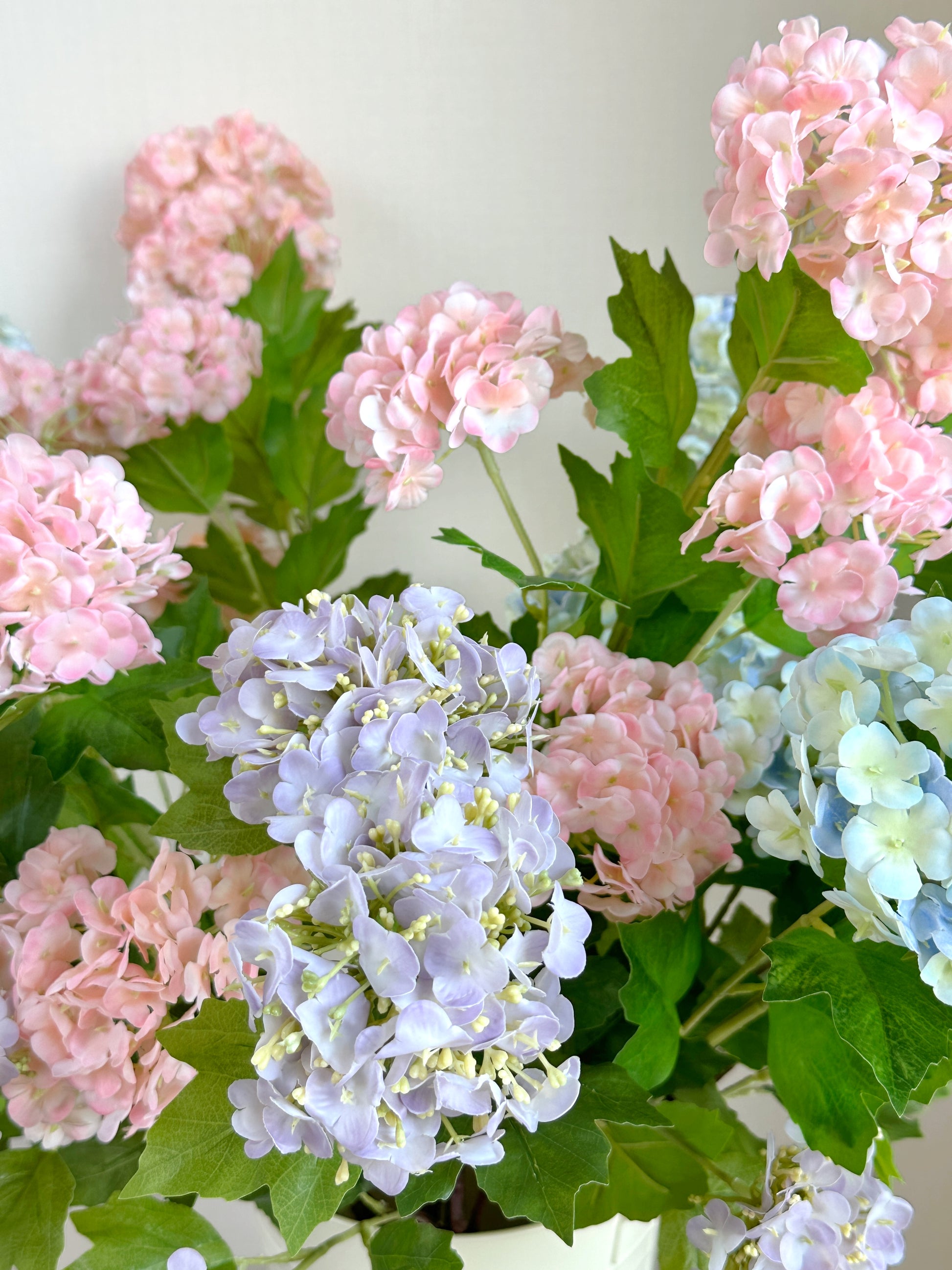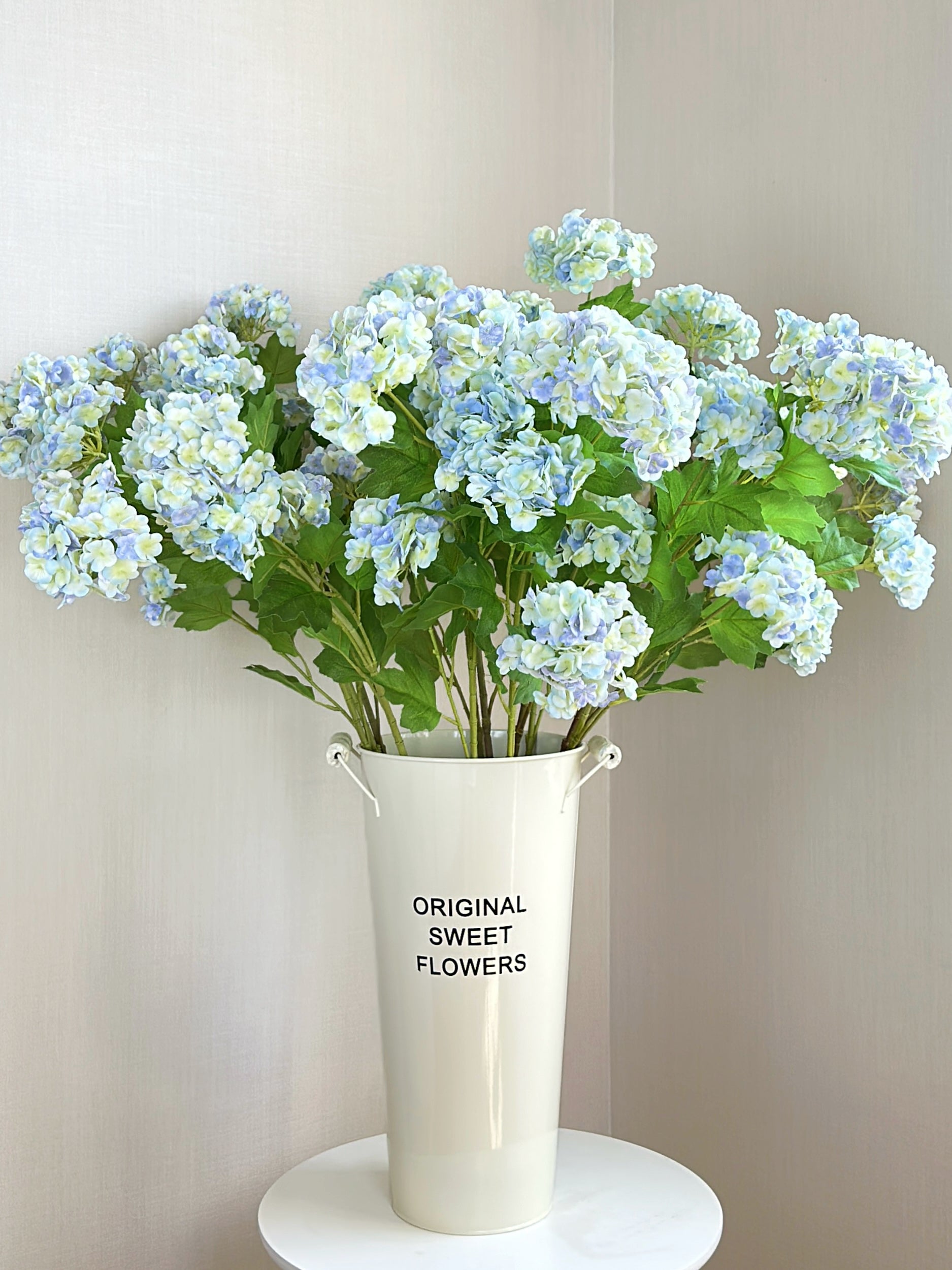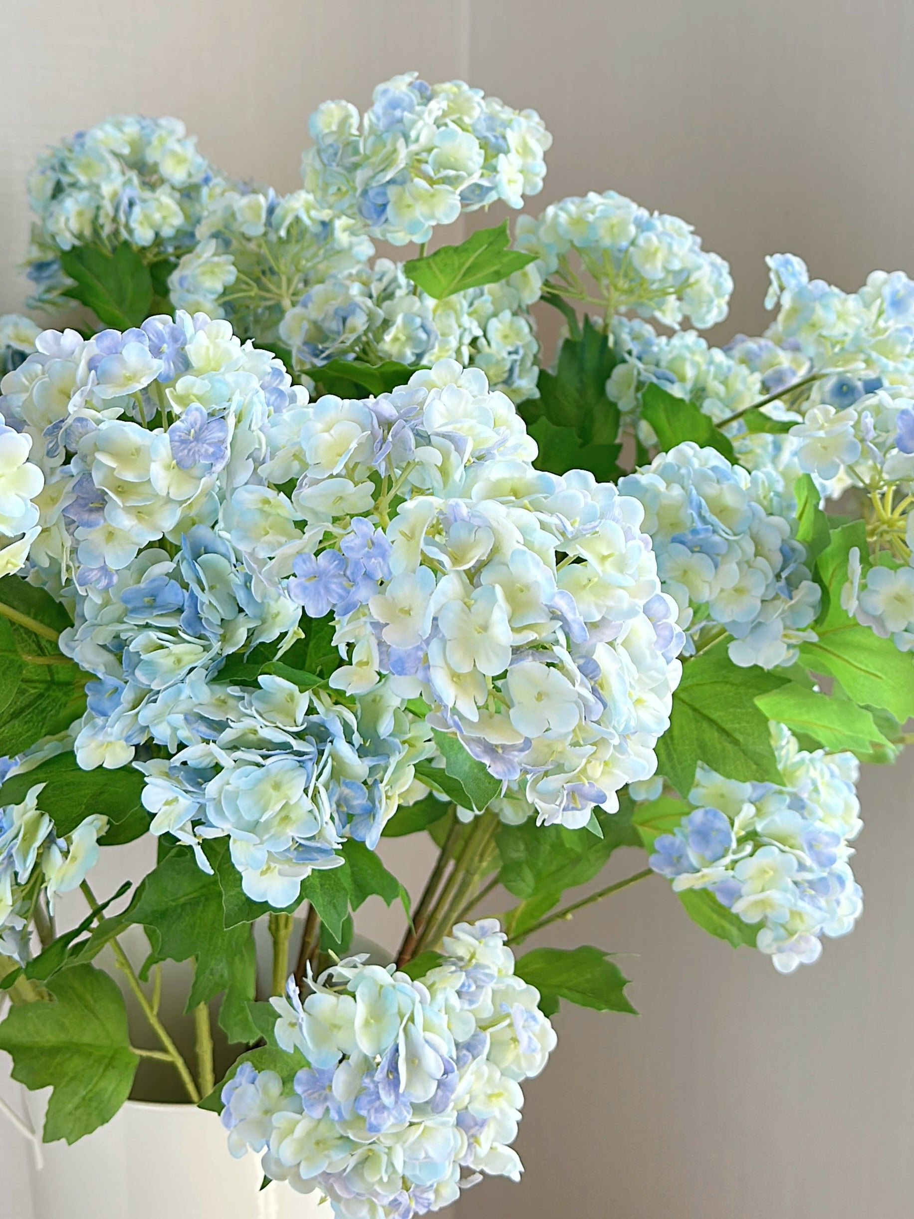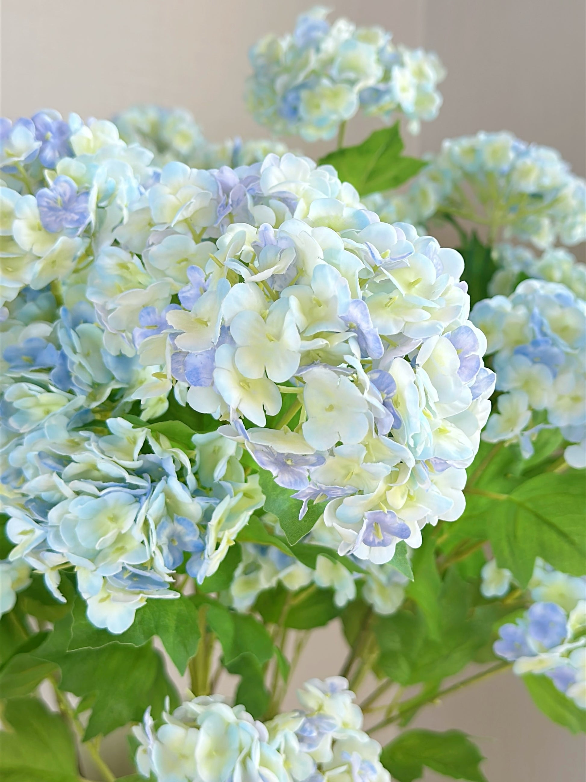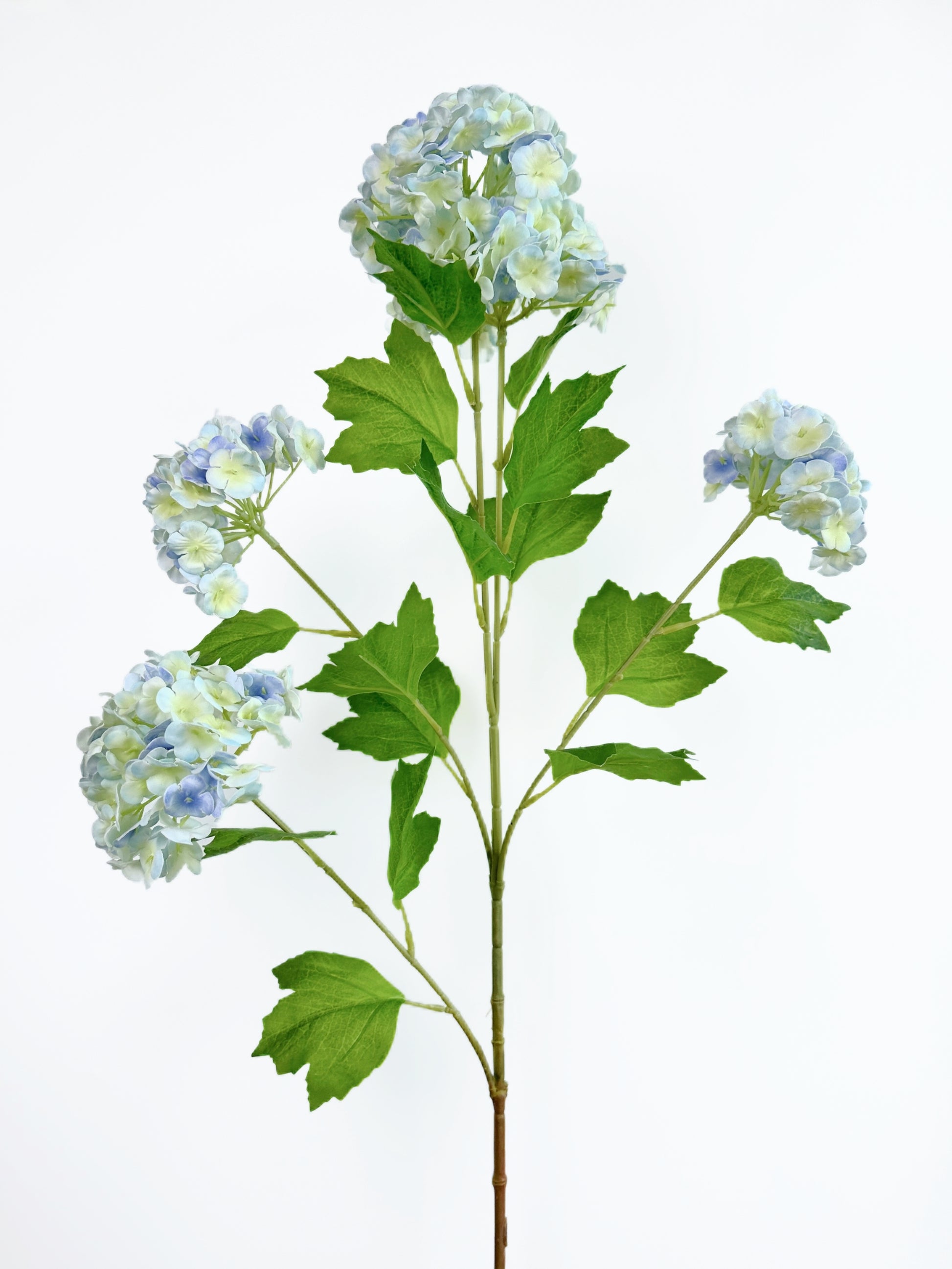 This Artificial 5-Head Real Touch Snowball in Blue features a delightful blend of light blue and soft white hues across its multiple small florets, creating a vibrant and lively display. Whether used as a complementary accent or a prominent centerpiece, these charming blooms will effortlessly enhance the aesthetic of any space, from bedrooms to offices, infusing them with a refreshing and elegant touch.